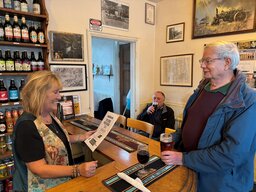 (Above Left)Branch Member Ron is making a presentation of the Licensee Pack for the 2026 Good Beer Guide at the Rose & Crown in Mayfield