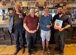 (Right)Ron and John are Joined by Richard at the Crowborough Cross for the Good Beer Guide 2026 Licensee Pack presentation to Pub Manager Craig