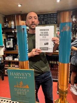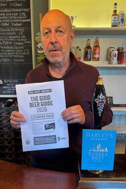 (Right)Dave at the Coopers Arms in Crowborough with his 2026 Good Beer Licensee Pack